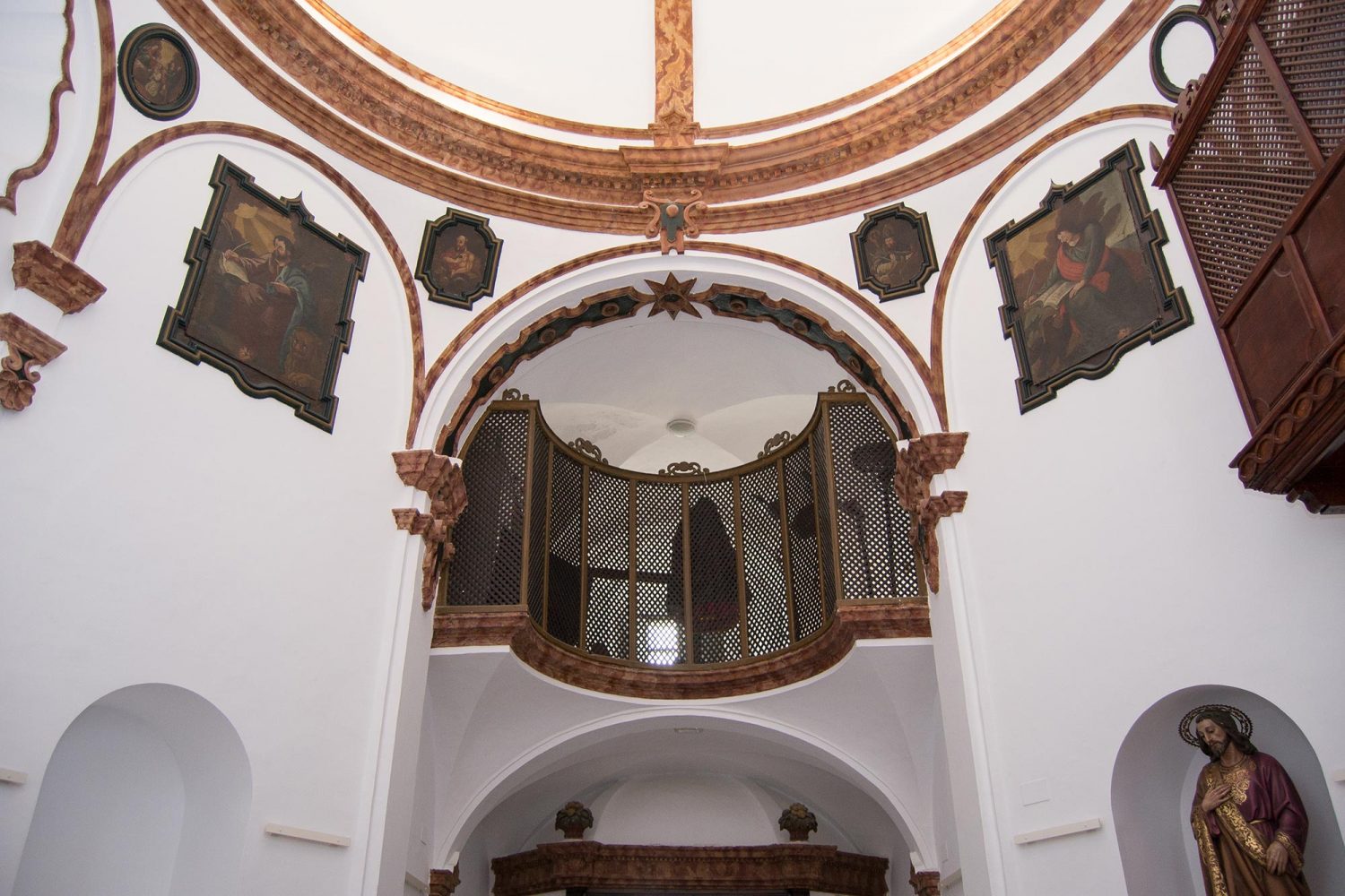 A fines del siglo XVI se efectúo su ampliación y se construyó la capilla del Nazareno ̶ antes dedicada a la patrona, la Virgen de la Fuensanta ̶ que, por su envergadura, constituye un templo autónomo dentro de la parroquia. Si en el exterior la iglesia ostenta una torre y sencillas portadas de corte clásico, en el interior se aprecian bóvedas de nervaduras góticas en la cabecera y capillas y pilares con semicolumnas de fuste torso que son muestra de un goticísmo tardío. Especial atención merece el retablo mayor, uno de los más notables de la provincia, de fines del XV o inicios del XVI, con una estructura gótica de refinada labra que alberga cinco tablas, firmada una de ellas por el pintor Pedro Romana, a quien se atribuye el conjunto, el más significativo representante de la escuela pictórica cordobesa de transición del Gótico al Renacimiento. En sus escenas se conjugan los recursos de la tradición medieval, como los dorados, con notas flamencas, patentes en la iconografía de los personajes, e italianas, en la cuidada arquitectura y paisajes de los fondos.