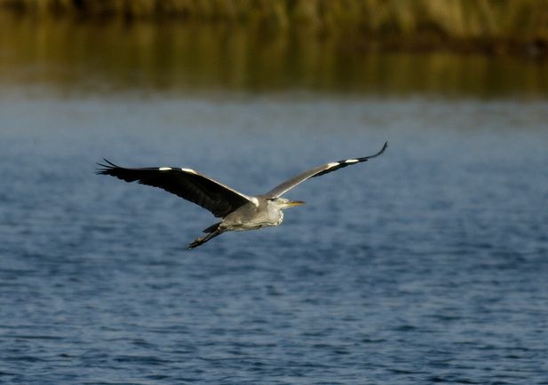 La garza real es un ave de gran tamaño, la mayor de las ardeidas que frecuentan nuestro país, de figura estilizada, largo cuello y coloración general grisácea, con un diseño variable según la edad y la época del año. Durante el periodo reproductor, la cabeza de los adultos luce una coloración blanca y aparece adornada por una línea negra y un par de largas plumas de este mismo color, en tanto que el cuello, blanco también, se halla surcado longitudinalmente por dos bandas paralelas negruzcas. El largo y afilado pico presenta un tono rojizo, y las regiones dorsales son mayoritariamente cenicientas, con una llamativa mancha negra en los hombros. Fuera de la época de cría, el diseño es menos contrastado, sin las plumas ornamentales de la cabeza y con el pico amarillento. En vuelo adopta la postura característica de las garzas, con el cuello encogido en forma de “S” y las patas estiradas sobresaliendo por detrás de la cola, si bien la garza real resulta fácilmente diferenciable del resto de sus parientes debido a su gran tamaño.